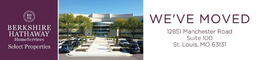 BERKSHIRE HATHAWAY HOMESERVICES SELECT PROPERTIES 12851 MANCHESTER ROAD, STE. 100 | 314.725.2050 BHHSSELECTSTL.COM