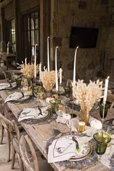 Wheat makes an eye-catching floral focus and now comes in a variety of hues, but the feathered placemats steal the show.