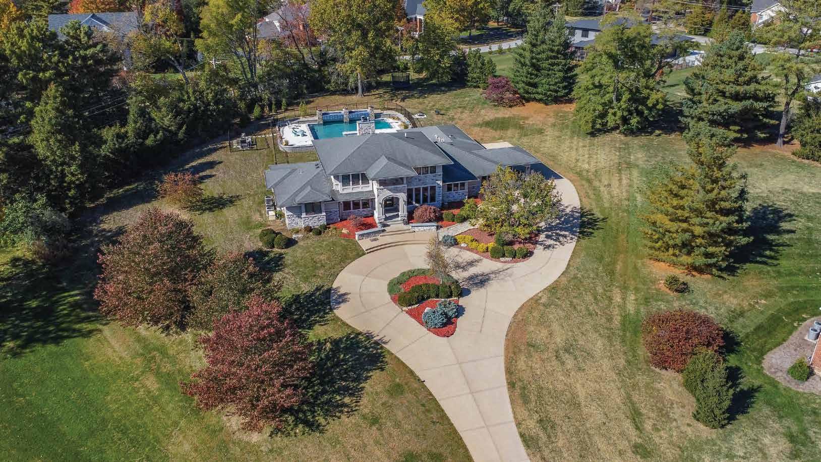 Situated on more than 1.6 acres in Creve Coeur, 17 Balcon Estates is a striking property. But for the current homeowners, it is first and foremost a place where they made many happy memories with their family. “We take pride in our home’s curb appeal as it sits prominently at the highest point of the street, but the most enjoyable part of living here is the privacy of the backyard by the swimming pool and fire pit, where we gather with friends and family,” they note. “The grandkids splashing in the pool waterfalls or running around the spacious backyard are fond memories that we will always cherish.”