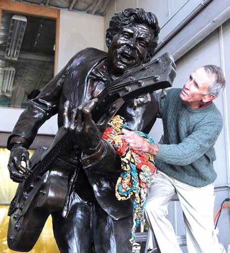 Harry Weber is known for his larger-thanlife bronzes around the world, around Busch Stadium… and in the Delmar Loop. And come Sunday, June 21, Weber also will be unique in the Loop, in a brass star denoting his cultural importance to the StL. Weber’s star, at 6261 Delmar Blvd.—near the Peacock Diner in U. City, just west of Skinker, near Eastgate Avenue—is only a few blocks east of his distinctive likeness of a guitar-slinging rock icon, Chuck Berry in mid-duck walk, which is right across the boulevard from Blueberry Hill. Weber will officially join dozens of artists, musicians, sports figures and other notable Gateway City greats on the hallowed St. Louis Walk of Fame, from architect Gyo Obata and playwright Tennessee Williams to jazz innovator Miles Davis and the late, great vocal powerhouse Tina Turner—“Simply the best.” Weber, who turns 81 on June 11, is to be the guest of honor at a ceremony marking the installation of his star, the text for which reads as follows… “St. Louisan Harry Weber’s larger-than-life bronze sculptures of famous sports and historical figures grace stadiums and public spaces across the US, China and Africa. His expressive sculptures give the sense that the figures are actually in motion with a fluidity that captures the emotional vitality of the moment. He vividly brought to life everyone he depicted whether it was the St. Louis Cardinals Hall of Fame baseball players in action, Boston Bruins hockey icon Bobby Orr exuberantly flying across the ice after a Cup-winning goal, Chuck Berry rocking and rolling with his guitar as if right on stage, or the striking portrait of Dred & Harriet Scott outside the courthouse where they began their fight for freedom from slavery.” To kick off the celebration, a ragtime band will start playing at 11 a.m.; the induction ceremony will start at 11:30 and is expected to last 15 to 20 minutes. The band will resume playing after the ceremony so visitors can see who’s who among all the famous people, both long passed and very much alive, represented by brass stars embedded in the sidewalks on both sides of Delmar.