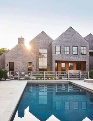 With its commanding presence and a captivating fusion of coastal and transitional design elements, the exterior of the Water Mill project is a true exercise in architectural finesse. The shaker-shingle canvas of the home provides a breathtaking backdrop and contrast to the elegant black-framed windows and doors, creating a splendid symphony of style. If you feel you’re missing a detail of this extravagant exterior—not to worry. The glass-sleek swimming pool offers an exquisite reflection.