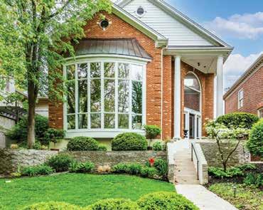 This two-story, more than 5,300 square feet home is nestled on 0.85 acres. Notable features include the custom kitchen with breakfast room and butler’s pantry, four season room, master retreat with custom walk-in closet and luxury bath, finished lower level with rec and craft rooms, and a beautiful stamped concrete patio in the park-like backyard. Mark and Neil Gellman | The Gellman Team EXP REALTY | 2001 S. HANLEY ROAD, STE. 185 314.336.1991 | THEGELLMANTEAM.COM