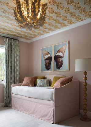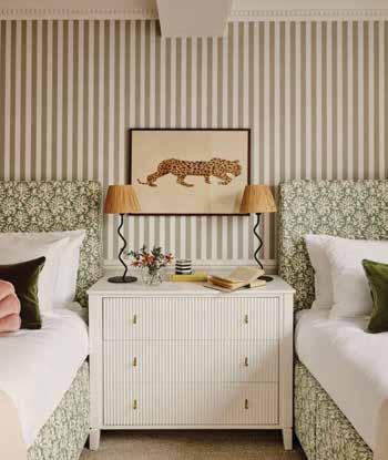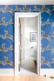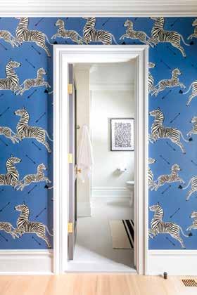 Set the tone: Determine the ambiance you want to create. Rich and textured wallpapers, ones with formal patterns like stripes, plaid, florals or chinoiserie— even metallic finishes—can lend an air of sophistication and elegance. Alternatively, more carefree patterns, like hand-drawn florals, small-scale geometric patterns, and colorful, playful patterns will create a more relaxed, carefree, and fun feel in a space.