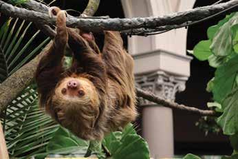 Guests can now get an unobstructed view of the Hoffman two-toed sloths at the Saint Louis Zoo. Located inside the historic Primate House, the new Sloth Atrium features waterfalls and flowing streams, custom climbing structures, built-in heat sources to replicate the warmth of Central and South American rainforests, and a moveable vine system that allows animal care staff to routinely adjust the habitat, mimicking constantly changing natural conditions.