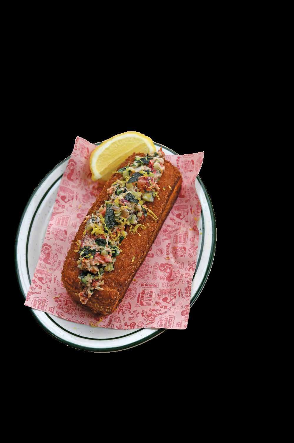 LOBSTER DONUT ROLL, $24: An innovative twist on the classic lobster roll, this dish features lobster salad paired with spiced aioli, balsamic tomato and lemon zest on a savory donut. The light and refreshing salad pairs nicely with the fried donut. If you’re worried about the dish being too sweet, don’t—the donut is not sugary.