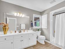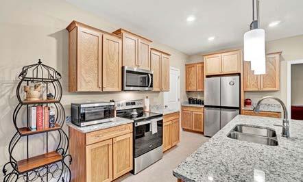 water. This spacious two-story home o!ers well over 3, 600 square feet, consisting of four bedrooms and ve baths. Walk through the front door on the main level (second level), which includes a lovely foyer opening up to an expansive open oor plan into the great room,