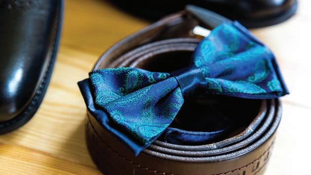 If you’re more of a classic man, you can never go wrong with a herringbone tweed. If you’re trendy or more free-spirited, or if you’re looking for a lighter fabric, try a cotton twill suit in a bold blue with a floral or paisley printed tie. If you’re more on the preppy side, go for a Polo soft slub style with a bow tie.