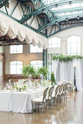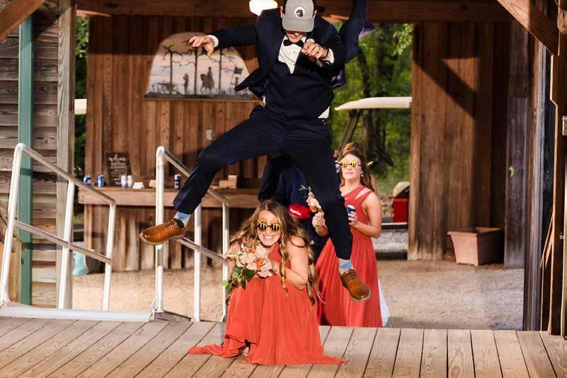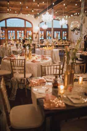 In addition to being able to host the rehearsal party, wedding, reception, after party, and breakfast on one prop erty, 68 guests were able to stay on-site, and the rest stayed at accommoda tions, suggested by the Wallaces and the Woods, within five minutes of the festivities. A fleet of golf carts trans ported guests across the venue’s rolling hills. And there was no pressure for the hosts to leave until the last guest left on Sunday.