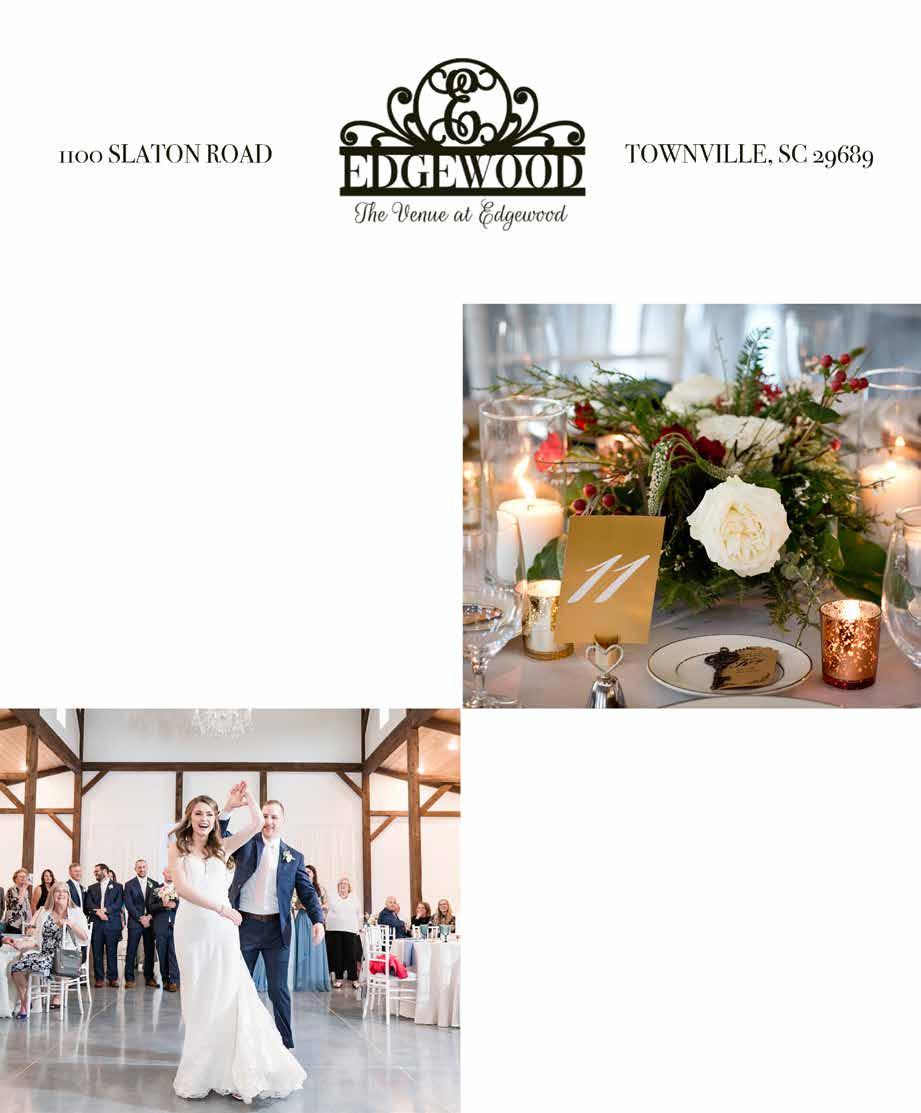 Florals were by Aimee Cromer and the festivities were catered by Foster’s Main Events of Anderson. Entertainment was by DJ Davis Bannister and photog raphy was by Katie Jaynes Photography.