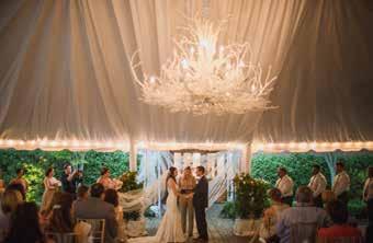 In the year since her daughter’s wedding, Debi has developed a list of tips for a destination wedding: Begin the planning process with a no-holdsbarred vision. Hire a local wedding planner. Develop rapport with the property manager. Engage and foster frequent communication between the bride and groom and their parents. Schedule time to meet with potential vendors so that you can taste the food and see the way they deliver their ser vice. Establish a reasonable budget with some padding to ensure it’s suffi cient with everyone’s agreement. Rely on your wedding planner.