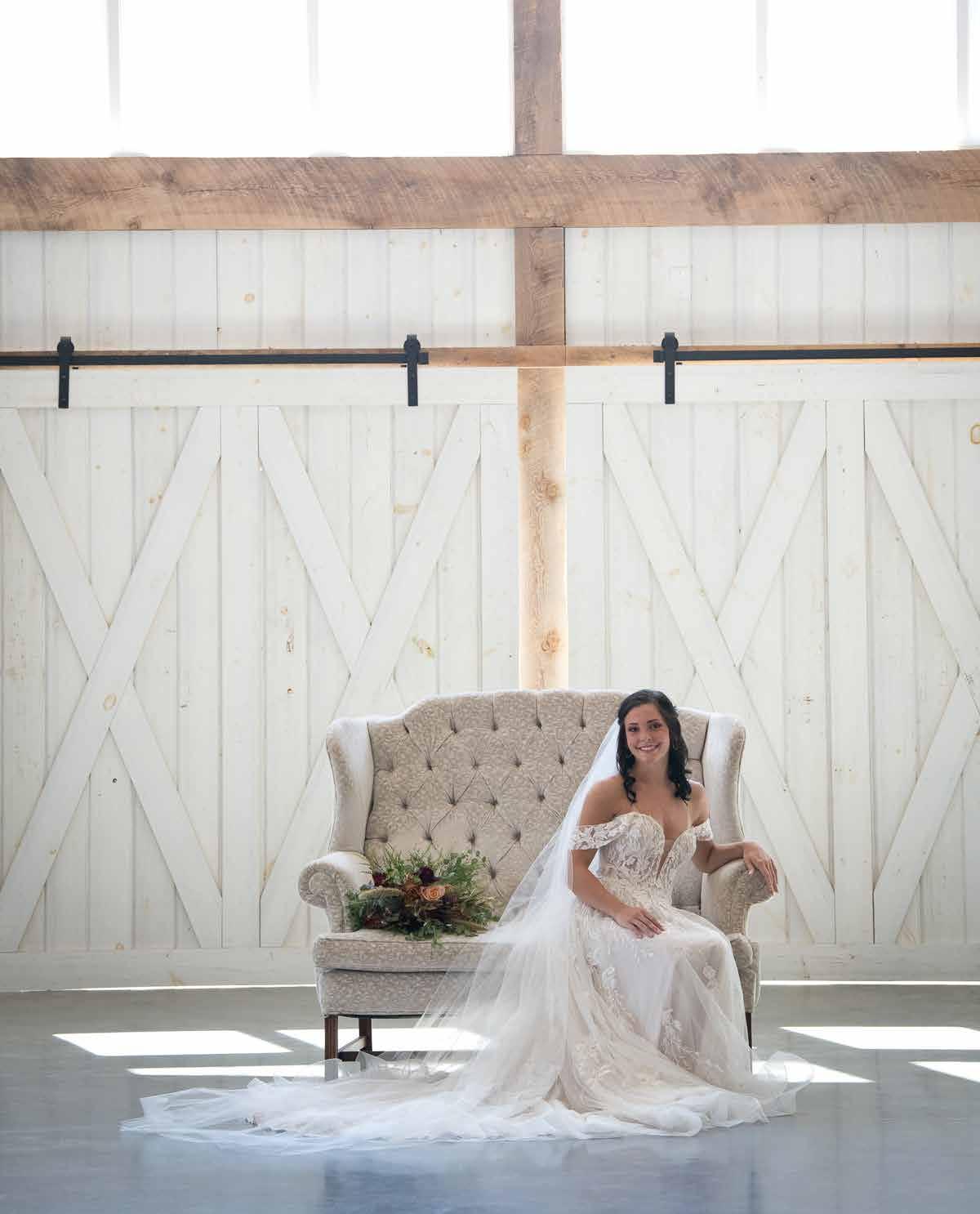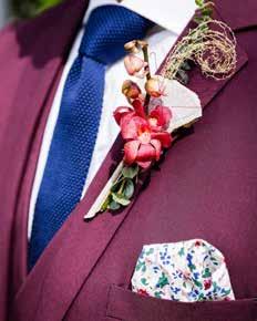 “I had never really grown flowers, so our back-up plan was literally scooting to a local grocery store to get handfuls of flowers for the bridal party,” she says. “While I hired a flo rist for the wedding day to prepare the flowers for the bridal party and