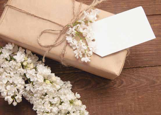 If you’re a couple who has every thing, be sure to keep charity in mind. Choose the organizations that best reflect your values, and to make sure that your guests’ dona tions end up in responsible hands, visit charitynavigator.org to learn which groups spend less on admin istrative and fundraising costs and more on fulfilling their missions.