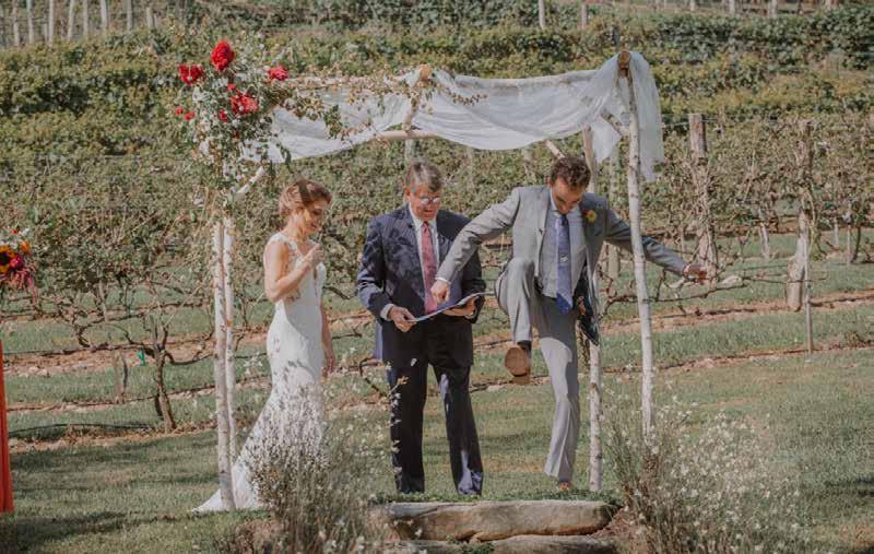“I asked them to give me the words that described their vision,” Debi says. “We stayed away from discussing a budget at this point; in terms of costs, we didn’t know what we didn’t know, and we wanted to explore without bound aries. Their answers were ‘fun, to truly be able to spend time with friends and family who have traveled, live music, relaxing, good food, wed ding party together, mountains, love, good DJ, and informal.’ David and I added our thoughts to the list as well. For us, it mattered that God be included – and that we pay respect to their different religious backgrounds, Christian and Jewish. That was also important to Daniel’s par ents, David and Lianne Wood of Spartanburg, South Carolina.”