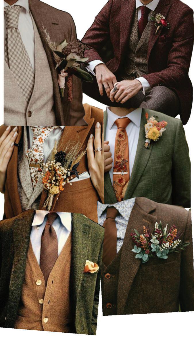 Well-fitted suits are a must. Also, for the groom’s color palette, we have some unusual colors thrown into the mix this season, such as olive green and warm tan. It adds some depth and refinement instead of your typical black tux, which is still always an instant classic, but this is for the more adventurous groom. Furthermore, earth tones are really beautiful to incorporate in the groomsmen’s attire. Warm caramel and wine are such a lovely contrast, and the bride will certainly swoon.