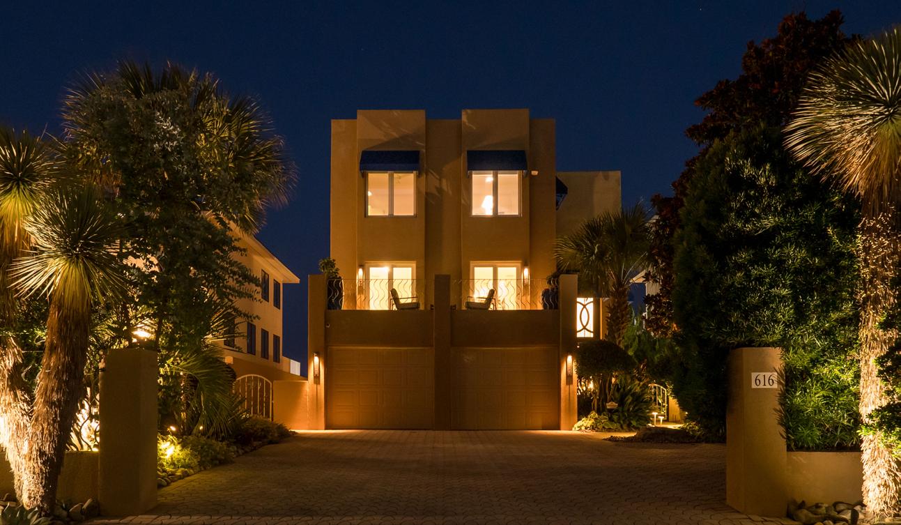 • Lush Landscaping, Palm trees, Potted Plantings. Striking art sculptures, low profile exterior Sonos surround sound speakers & ambient low voltage lighting setting the mood for entertaining family & friends.