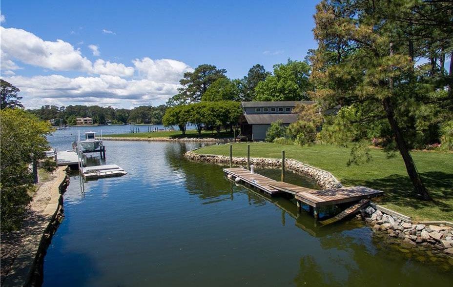 Inspired by Frank Lloyd Wright’s design, this magnificent, modern six bedroom, 4 1/2 bath waterfront home is beautifully situated off the Eastern branch of the Lynnhaven River in highly desired Little Neck. Offering stunning architectural details & quality finishes, this wonderful home is in impeccable condition. Enjoy amazing water views & a peaceful nature setting. The bright and open kitchen features professional grade appliances, custom quality cabinets and beautiful granite counters. Offering soaring 12’ ceilings, the tremendous great room features a double sided fireplace, a wet bar & walls of windows overlooking the water. The inviting, spacious owner’s suite offers a tray ceiling, two walk-in closets, a built-in coffee bar, an office, private porch and magnificent water views. Excellent value! Quality construction. Stately brick fencing, two driveways. Superb location close to jogging path, parks, swim club. Kingston Elementary!