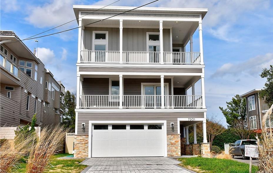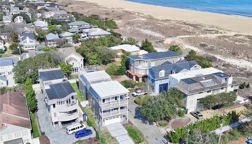 Built to exacting specifications for the express purpose of truly memorable times at Virginia Beach’s North End Oceanfront, 1st house back, no flood insurance, all fresh and new with entertaining spaces of remarkably stylish yet utilitarian design: tour it: from the large two car garage (or boards and golf cart and who knows what else) plus driveway spaces for four more cars; first floor Living Room, two bedrooms and full Bath, use the elevator to second floor Principal BR and BA plus VIP bedroom and bathroom; and on to the crowning glory: third floor coffered ceiling Great Room, Kitchen and Dining Area. Don’t forget to bring the rockers for the two wrap around balconies or better yet, take the exterior stairs to the rooftop deck where outdoor dining and hot tub diving can take place. It’s a family treasure of surprises and glories, places for quiet and areas to be jovial and full of laughter and the joy of being in a special place. No condo fees (two unit exempt). Come see it before someone else makes it theirs.