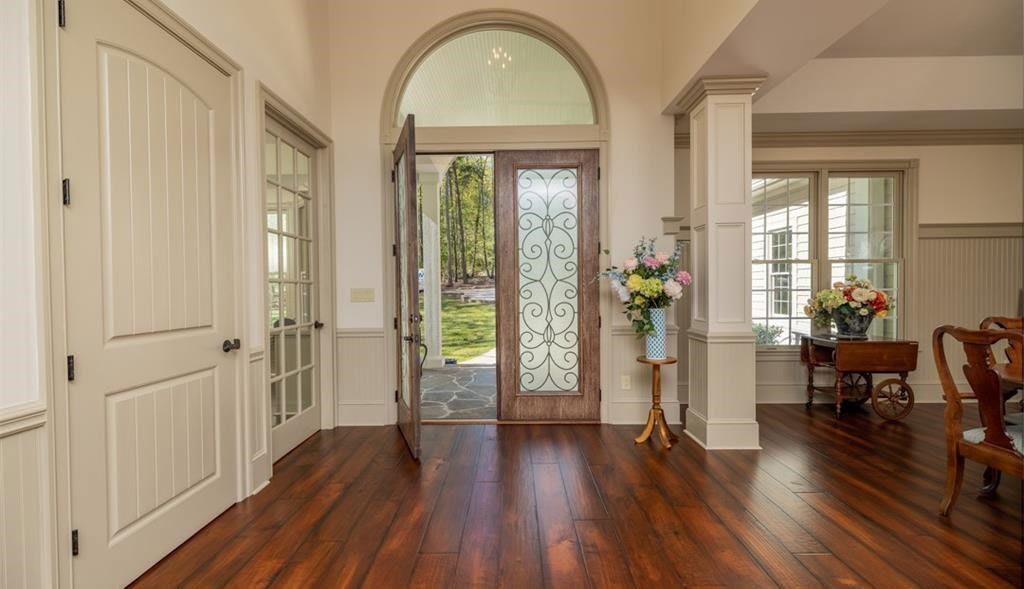 Grand and sophisticated, yet warm and inviting, this home is an entertainer’s dream. Well appointed with the quintessential amenities throughout include extensive millwork, soaring ceilings, Wolf, Sub Zero and Cove appliances. The heart of the home lies in the kitchen, breakfast, and keeping rooms. Enjoy Antillera marble counter tops and backsplash, a walnut center island, breakfast bar, open to cozy keeping room with gas fireplace. The firstfloor primary retreat has a spa like bath with frameless glass shower and floating soaking tub, with heated towel bars and floors. A grand great room, large dining room, and library turned billiards room are sure to entice. The secondfloor hosts four guest rooms, three are en-suite. An extensive bonus with game room, movie room, and exercise room. Outside you will find an expansive deck with a built-in kitchen, in a very private setting with golf course views. Enjoy a golf cart garage with private path to the cart path.