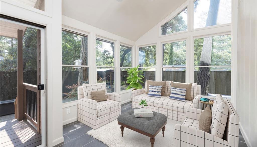 Enjoy one-level living in this “southern charm” home on a cove of the Lynnhaven River. Picturesque, private setting w inviting covered front porch on large corner, cul-de-sac lot near Club Brittnay swim club. Tastefully updated home with beautiful eat in kitchen (freshly painted) with large pantry and granite counters. Ideal entertaining spaces with large dining room and great room with vaulted ceilings and stone fireplace. Beautiful hardwood floors in the main living spaces. Enjoy evening sunsets overlooking the water on the brick patio with built in grill, large firepit, heated/cooled greenhouse, and storage shed. Excellent schools and central Great Neck location.