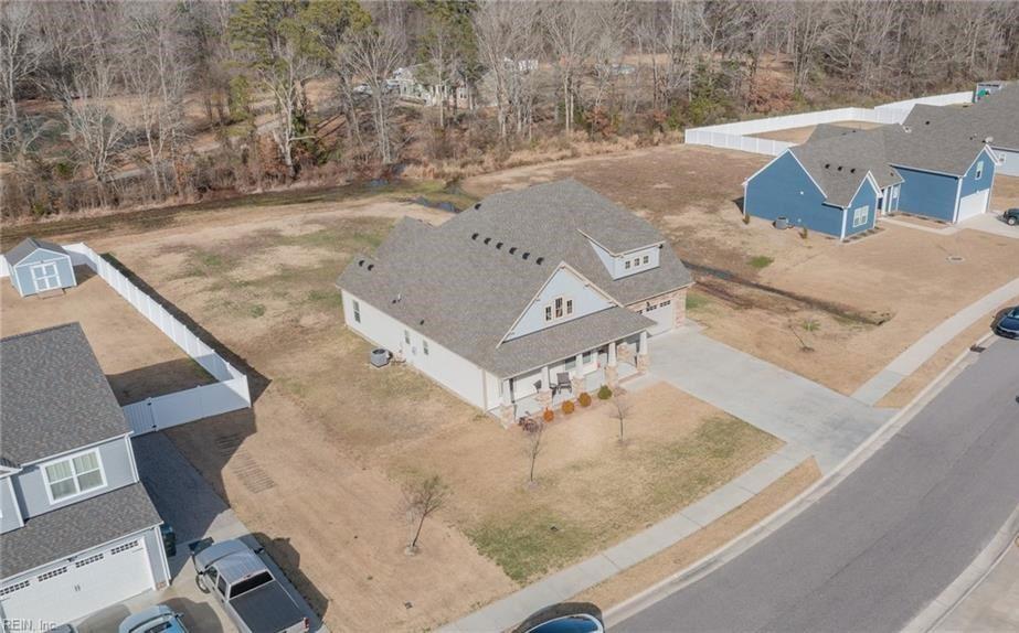 Windswept Pines is one of the neighborhoods that gets you as close to the VA/NC border as possible. This Cambridge features 18ft cathedral ceilings, screened in porch, and a full bath in the FROG. This beautiful Craftsman styled ranch sits on a .46 acre lot with edge on the back edge of the property. New LVP flooring installed for the main areas of the home! Installed in April.