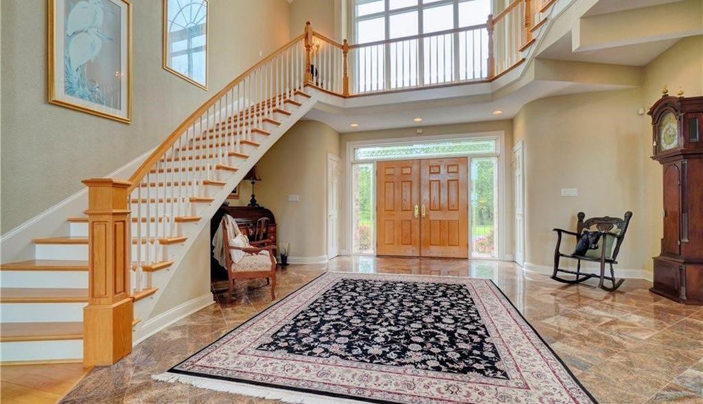 Discover true luxury living with this exquisite custom chateau in Governor’s Land. Situated along the 16th fairway of the award-winning Two Rivers Golf Course, this striking home captivates you with its expansive floor plan and detailed luxury design features. The foyer welcomes you to explore its warm hardwood flooring, beautifully crafted millwork, and naturally lit vaulted ceilings. Whether entertaining fireside in your custom hammerbeam family room, or working from home in your private library with built-in bookcases, you find comfort in every corner. Its luxury kitchen appeals to the busiest family, boasting granite countertops, stainless steel Thermador six-burner double oven, and custom country cabinetry with abundant storage space. Imagine relaxing with friends in your three-season sunroom, grilling and bird watching from the porch in your low maintenance backyard, or unwinding with family in the media bonus room.