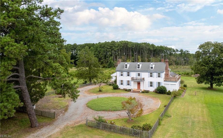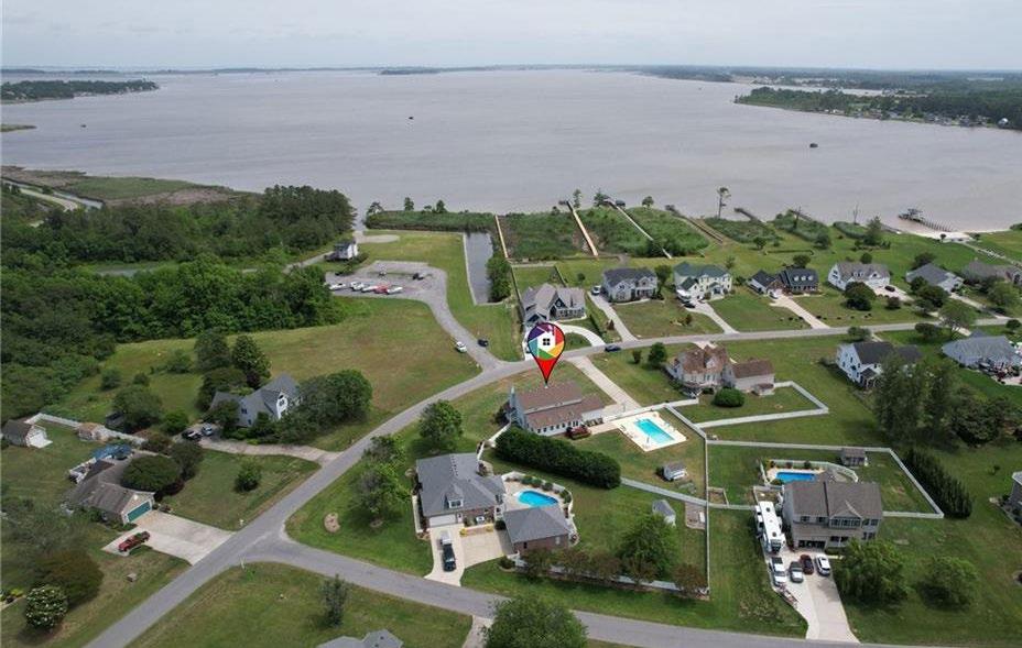 Wake up to views of the Albemarle sound! This unique log home offers first floor master en-suite with fireplace, walk-in shower and closet. Home has potential for two additional bedrooms. Wind through the halls and discover the brick fireplace, cathedral ceiling, hickory cabinets, engineered hickory hardwood floors and pine/redwood walls! Enter the kitchen and discover the butcher block island, quartz countertops, custom cabinet and gas stove. Loft, Christmas circuit, new roof (2021) whole home generator, sunroom, detached 2,500 square feet workshop with electricity, hot water and half bath, crab shack and boat ramp. NO HOA”S! Too much to list! A rare find! www.LuxuryCollectionHomes.com/10453705