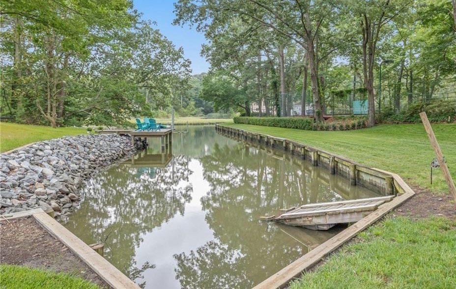 The best of both worlds! Beautiful, six bedroom, 4,700 square foot, deep waterfront home overlooking Crystal Lake and just a short distance to the North End oceanfront beaches! Gorgeous traditional brick home is loaded with charm and character and features a beautifully updated kitchen, paneled family room, office, open air porch overlooking the water, wonderful primary suite with sitting room, elevator, two fireplaces, custom trim and moldings and lovely hardwood floors throughout. Beautifully landscaped yard with in-ground sprinkler system and pond, deep water boat dock, and a two car side load garage all located on a private cul-desac. A rare find at the North End!