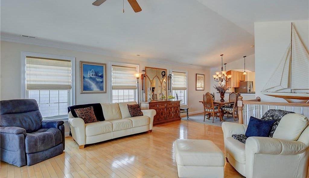 Oceanside two unit condo with very desirable flexible floor plan with three bedrooms and two baths on first floor with laundry room. Third floor primary with cathedral ceiling and updated primary bath. Elevator to all three floors. No condo fee. Lovely sitting area deck off great room. Oversized updated kitchen with open to either dining room or extra family area. Family room is two story. Hardwood and tile throughout. Quality construction. Beauty of a oversized street. Gated entrance for privacy. Even a much loved traffic light to Atlantic Ave. Luxury at the beach!