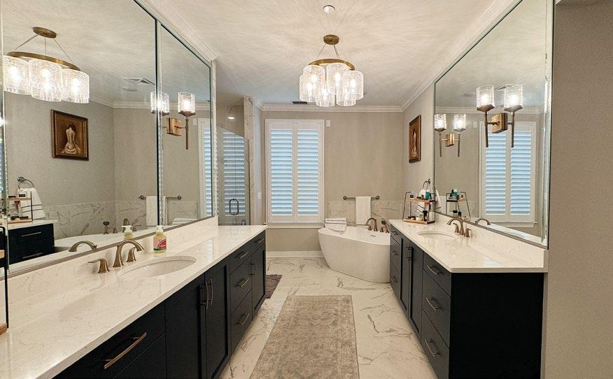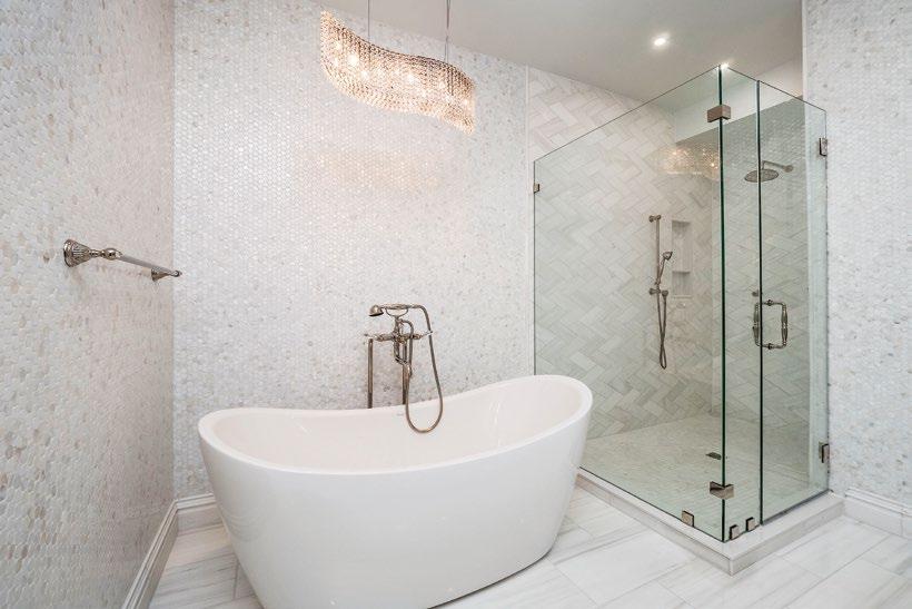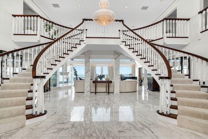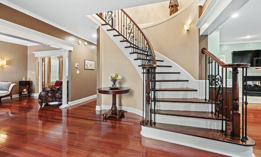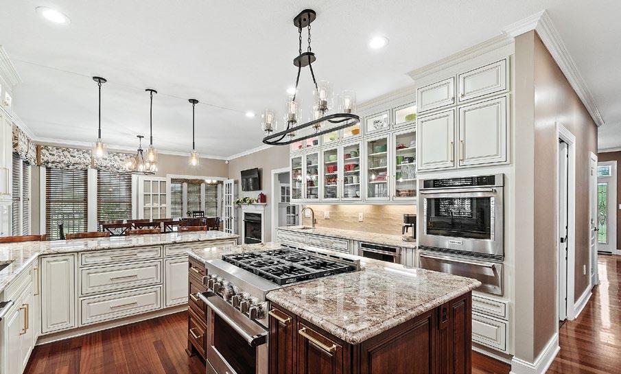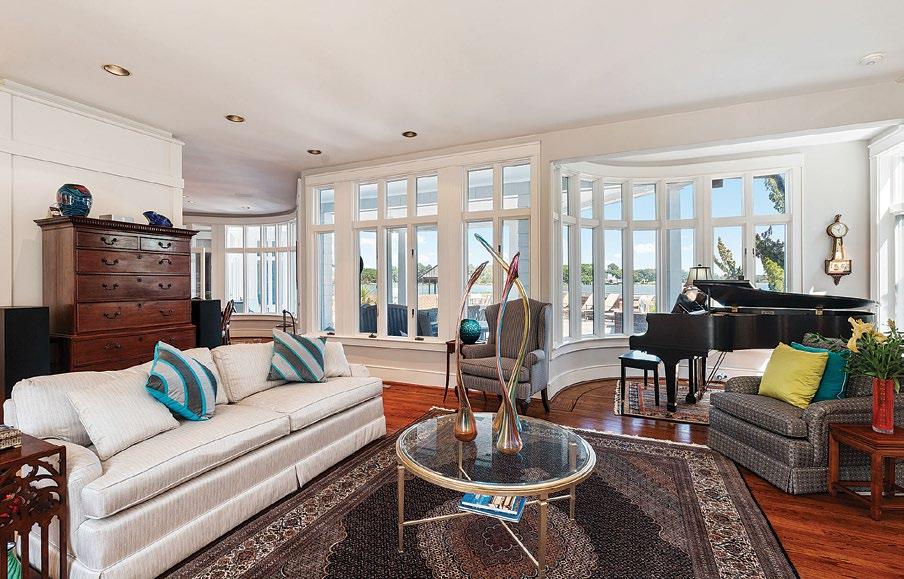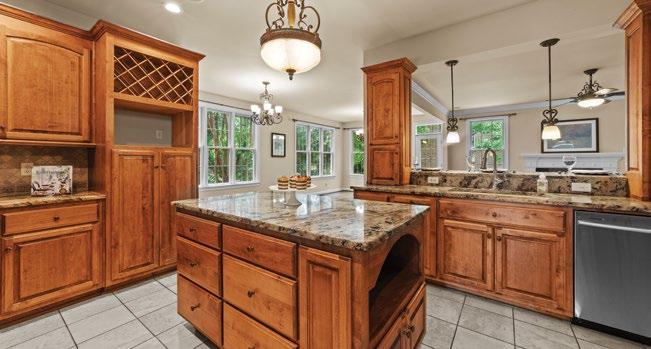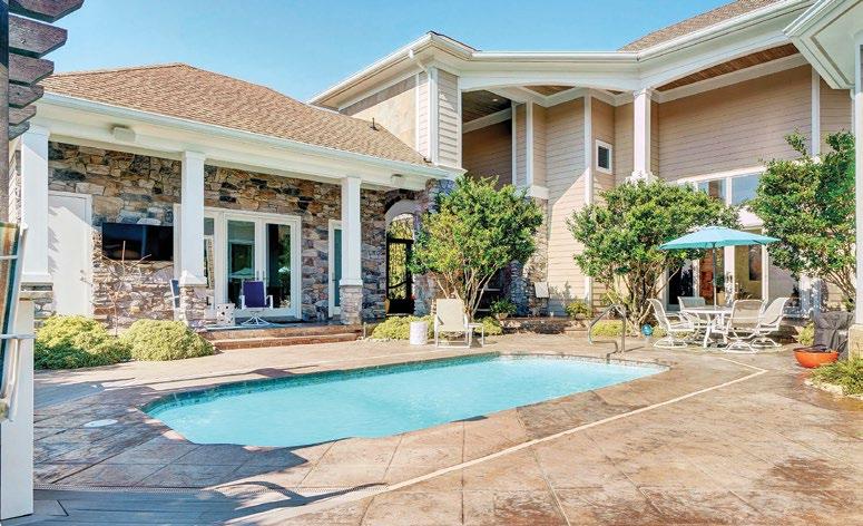 walk-in closets. In-law suite has living room, bedroom, tiled bath, steam shower, and washer/dryer. 50 year 180 mph composite roof 14, break proof windows, four zone HVAC and ductwork ‘20, Painted exterior ‘23, gas furnace ‘20. Whole house gas generator. 150 foot pier, 10K lb boatlift ‘24, composite floating dock, new hot tub. A three-car heated garage houses your prized vehicles. Outdoor space has Bluestone patio, Gunite pool.