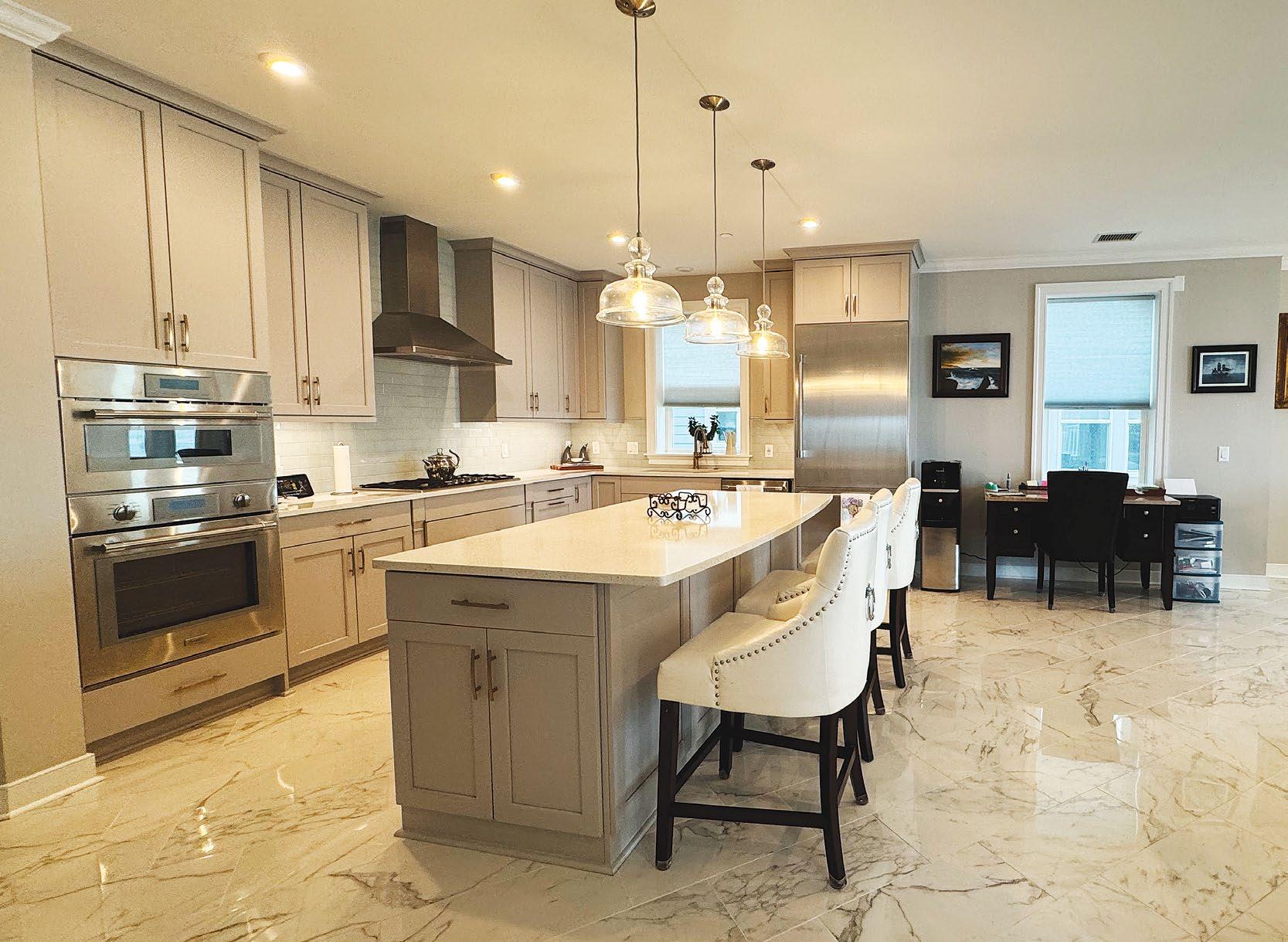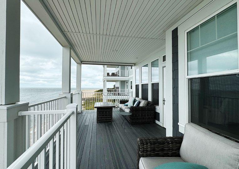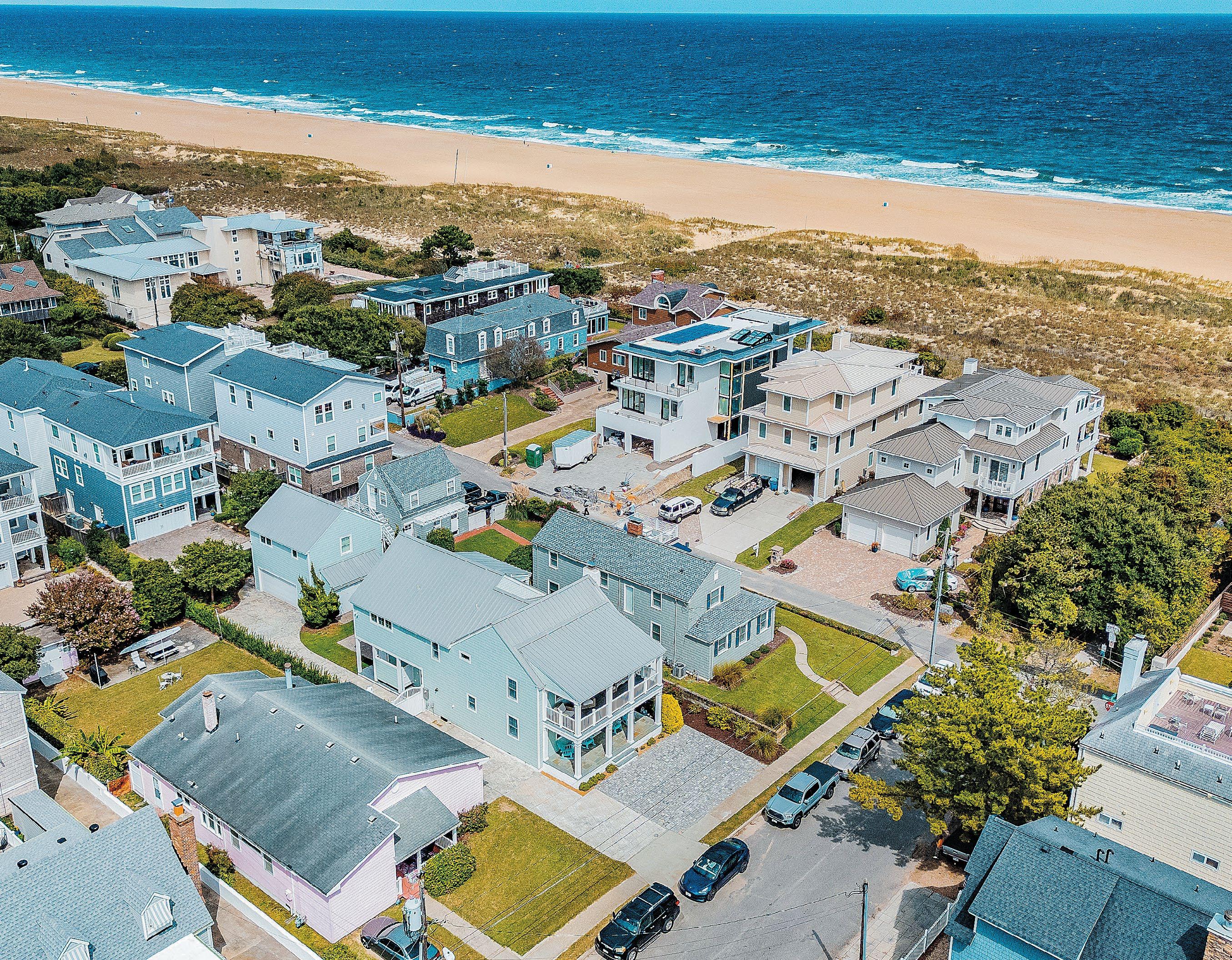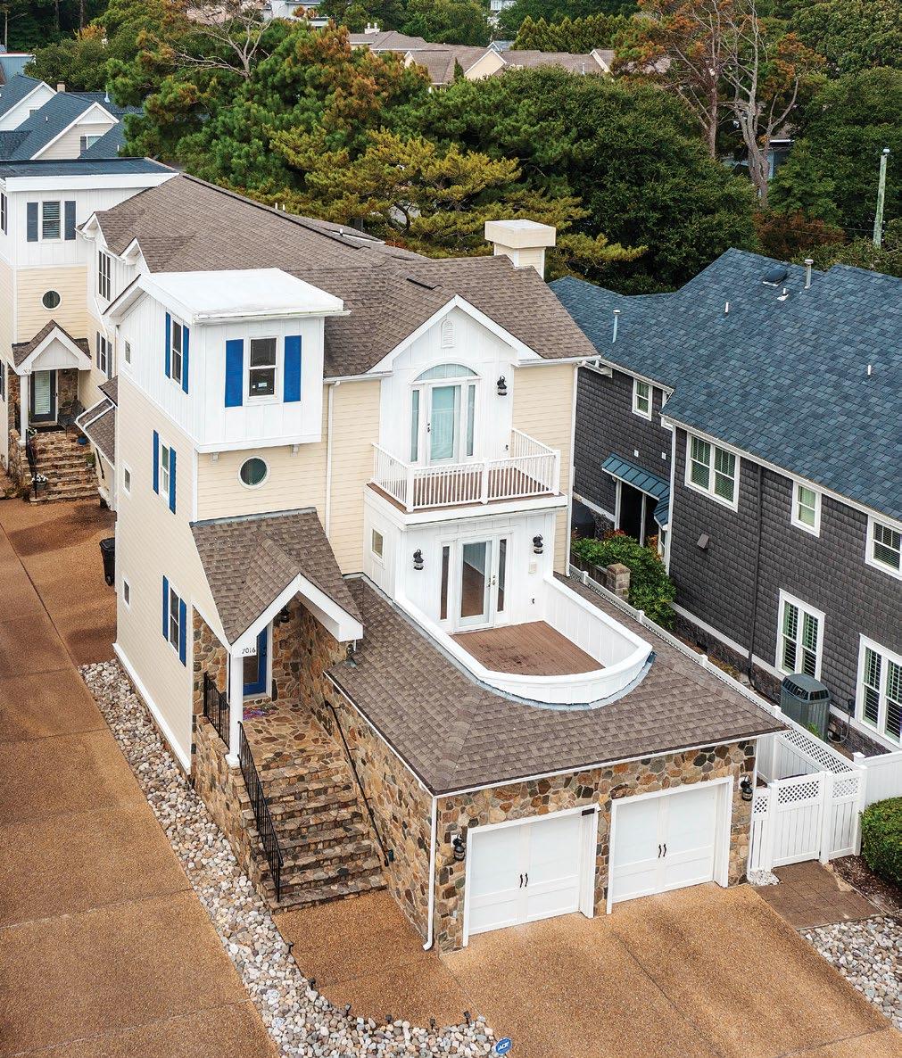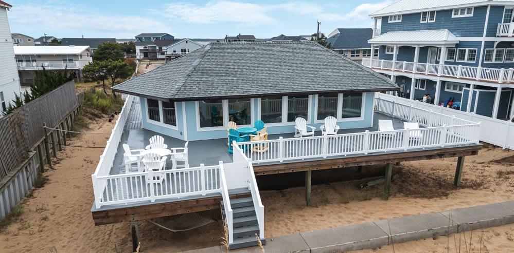 guest rooms and well-appointed full baths. Impressive owners suite with stunning ocean views, tiled primary bath, executive office with built-in cabinetry, spacious walk-in closet and private deck. Three-stop elevator for easy access. Oversized garage with first floor flex room, office, storage room and full bath. 50-year grandmanor shingle roof, hurricane shutters and ample parking. Don’t miss the opportunity to call this oceanfront jewel home!