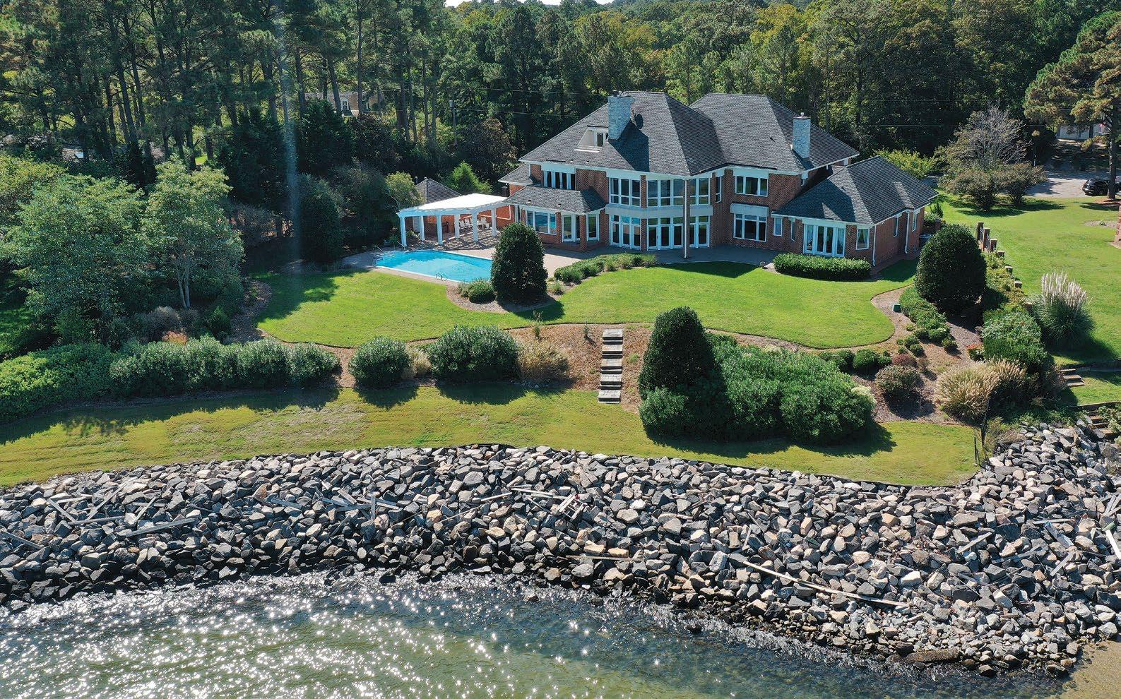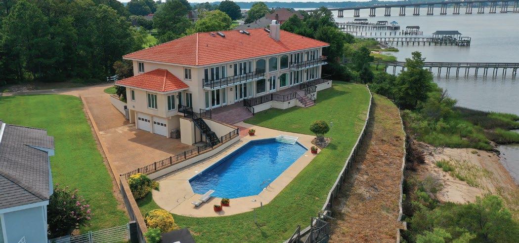 Premier 1.77 acre waterfront estate on the James River. Impressive 11,373 square feet of luxurious appointments and details to include: grand marble foyer with sweeping staircase to second floor; first floor office; extraordinary open family room with majestic views of the James; first floor expansive primary suite with personal counters and closets, private first floor bedroom ensuite; spiral stairs to the exercise room; full elevator; gourmet kitchen includes two ovens, two microwaves, two refrigerators, large eat-in area plus multiple seating at the counter bar, huge walk-in pantry, private entrance from pool to full bathroom. Second floor includes three ensuites, game/ entertainment room; bonus third floor provides privacy for late night cocktails overlooking night lights dancing on the James. Finished basement includes living room, exercise and entertainment rooms, whole house generator, fourcar garage, and in-ground pool.