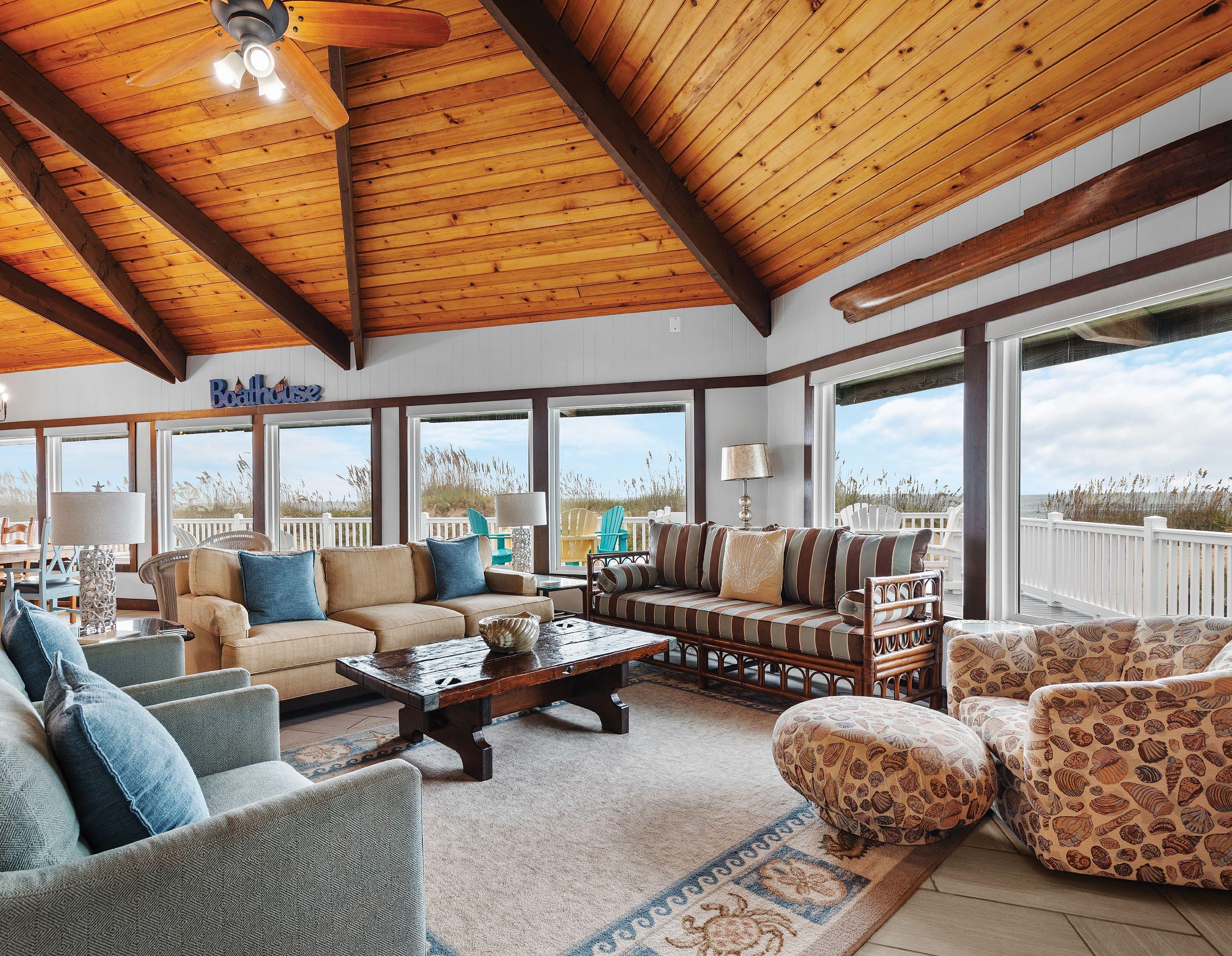Majestically situated along the shores of the Atlantic Ocean, this oceanfront coastal style cottage has been lovingly cared for and renovated with quality materials and finishes. Topped with a vaulted, exposed beam and shiplap ceiling and anchored by sturdy tile flooring, the sensational great room features walls of windows on three sides offering 120 degree, breathtaking views of the ocean. A soft neutral palette and a blend of warm wood tones combine to achieve a cool, beachy style with happy vibes. The granite kitchen features a timeless backsplash and an island and connects with the dining area to offer generous seating. Two of the four bedrooms have sliding doors leading to the balcony. Soak in the sun on the wrap around, low maintenance composite decking with new vinyl railings. Other quality improvements include a newer concrete bulkhead/seawall, roof, Hardie Sierra siding, windows, sliding doors, flooring, bathrooms, garage doors and so much more.