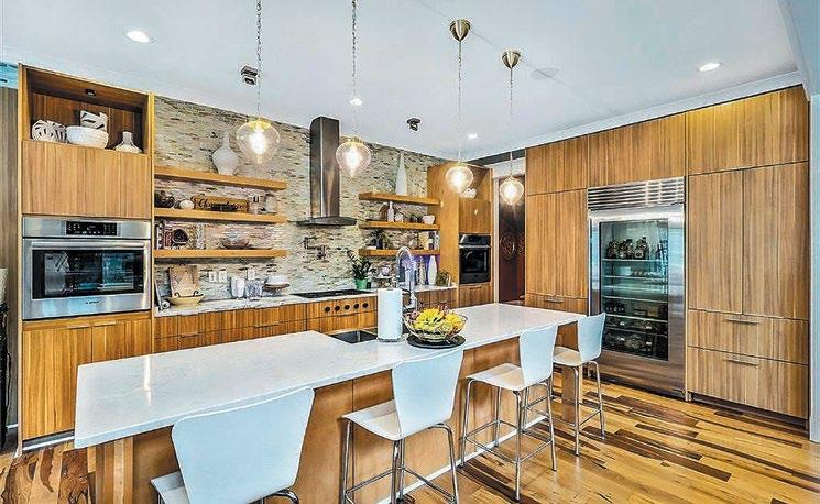 custom cabinetry, crown moldings, white oak flooring, quartz-counters and top of the line Thermador, Subzero and GE Profile Appliances. Two primary suites on first and second; private guest suite with kitchenette; spacious rec room and third floor media room with bonus bedroom suite. Twin laundries on first and second; oversized pantry with wine coolers and ice machine. Enclosed storage room ideal for bikes