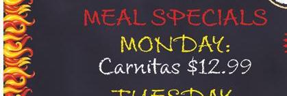 January To-Go Dinners every Tuesday, Wednesday and Thursday $15 FOR EACH MEAL (inclusive of tax)