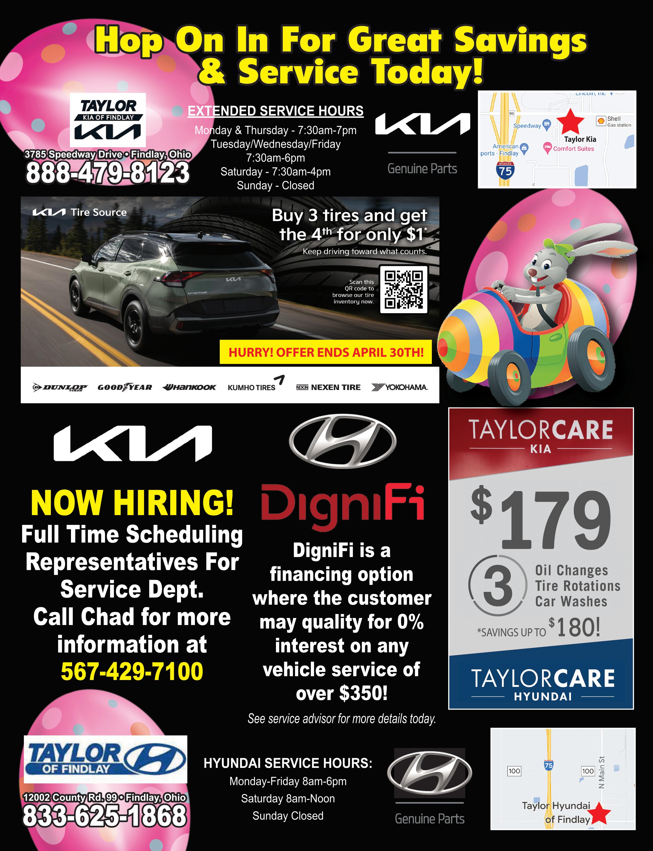 WE PROVIDE FULL SERVICE: 125 E. Front St. Downtown Findlay (419) 422-8945 www.fornesbrake.com Does not include tires. Coupon must be presented at time of drop off. Most vehicles. No other discounds apply. See store for details. Shop suppliers extra. Expires 5/16/2022 FREE BRAKE ESTIMATES Locally owned and operated by Tim Starr Brakes, Alignments, Engine Diagnostics, Batteries, Oil Changes With coupon. Valid on most cars and small SUV’s. 2-year parts warranty. Not valid with any other offer. Expires 5/16/2022 with FREE Tire Rotation & Brake Inspection $49 99 With coupon. Not valid with any other offer. Excludes diesels. Includes filter and up to 5 quarts of oil. Most cars and light trucks. Expires 5/16/2022 Installed Premium Brake Pads & Rotors (per axle) Service Special Synthetic Blend Oil Change $349 99 $10 off $100 $20 off $200 $30 off $300 LANDSCAPING & FIREWOOD, LLC 419-424-3884 1-888-JIM-BAME Today’s ideas. Tomorrow’s look. Yesterday’s price. SPRING IS HERE GET YOUR LAWN IN SHAPE With coupon. Expires 5/20/22 $5.00 off Mulch delivery • Mowing • Mulch and top soil available • Landscape design and installation • Paver patio and walks • New lawns (seed or sod) • Irrigation