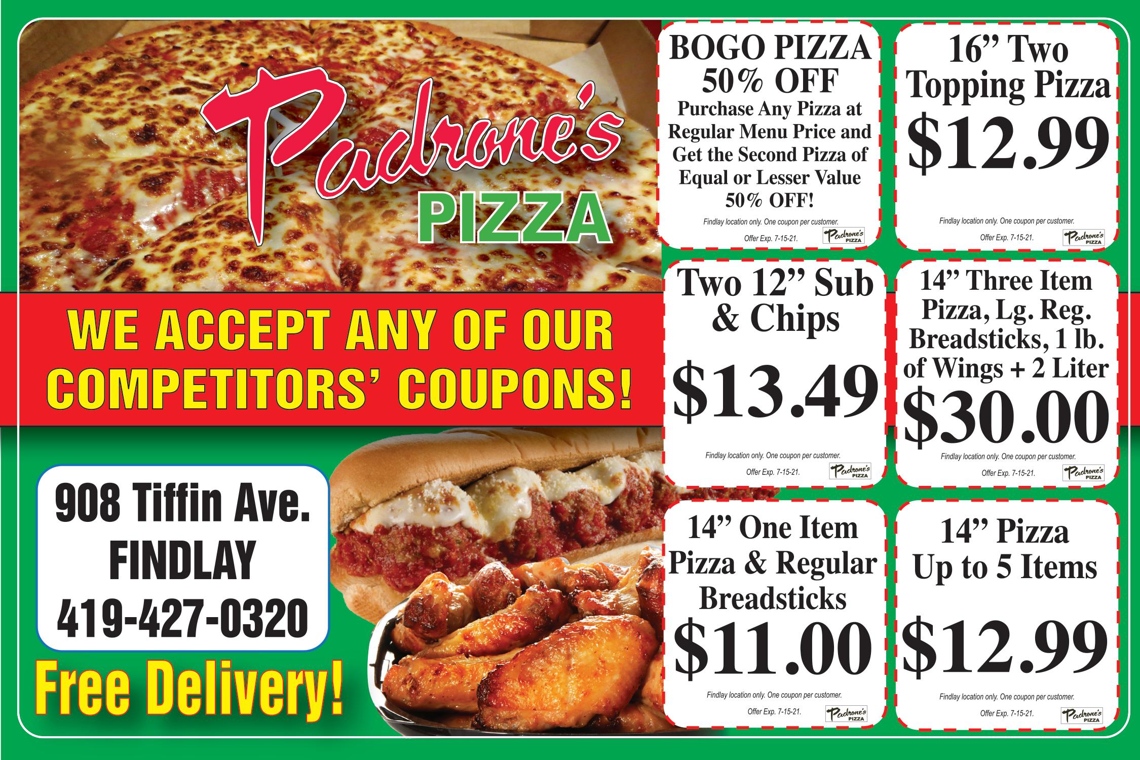 ONLINE ORDERING NOW AVAILABLE www.HeavenlyPizzaFindlay.com WE DELIVER TO: Arcadia, Arlington, Benton Ridge, Bloomdale, Jenera, McComb, Mt. Blanchard, Mt. Cory, North Baltimore, Rawson, Van Buren and Vanlue Sunday and Monday: 3-10pm Tuesday-Thursday: 10:30am to 10pm Friday and Saturday: 10:30am to midnight HOURS: 1404 N. Main St. Findlay 419-423-7494 Follow us on: John 3:16 With coupon. Extra cheese and/or chicken are additional cost. Can not be combined with other offers or coupons. Expires 7/15/21 TMS With coupon. Extra cheese and/or chicken are additional cost. Can not be combined with other offers or coupons. Expires 7/15/21 TMS With coupon. Extra cheese and/or chicken are additional cost. Can not be combined with other offers or coupons. Expires 7/15/21 TMS With coupon. Extra cheese and/or chicken are additional cost. Can not be combined with other offers or coupons. Expires 7/15/21 TMS JR FAMILY PAC Jr. Jumbo pizza, 1 topping, 1 order Cheesestix, 1 order of Wings and 2 liter of pop 24 95 $ $32 95 FAMILY PAC PIZZA 1-Topping, 1 order of cheesestix, 1 order of wings & 2-liter of pop 16” 1 ITEM PIZZA Plus one order of Cheesestix 15 95 $ $24 95 JUMBO DEAL (24 Slices) Cheese & 1-topping & small order of cheesestix or garlic bread With coupon. Extra cheese and/or chicken are additional cost. Can not be combined with other offers or coupons. Expires 7/15/21 TMS With coupon. Extra cheese and/or chicken are additional cost. Can not be combined with other offers or coupons. Expires 7/15/21 TMS With coupon. Extra cheese and/or chicken are additional cost. Can not be combined with other offers or coupons. Expires 7/15/21 TMS With coupon. Extra cheese and/or chicken are additional cost. Can not be combined with other offers or coupons. Expires 7/15/21 TMS ANY TWO LARGE SUBS 12 95 $ $15 95 16” 3-ITEM PIZZA 14” 1-ITEM PIZZA Plus one Large Foldover 2195 $ $21 95 14” PIZZA UP TO 3 ITEMS Plus order of 10 wings