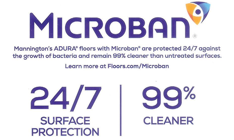 FREMONT Potter Village Shopping Center 1108 Oak Harbor Rd. 419-333-0370 any purchase of $20 or more store wide! 5 OFF $ Expires 3/15/2022 regularly priced merchandise only. www.fremontfloorcovering.com 218 N. Front Street Fremont (419) 355-8480 We’ve combined our durable SureSoft™ Solution Dyed nylon and polyester fibers with unmatched brand recognition of Microban®. Microban® helps protect 24/7 against the growth of bacteria, mold and mildew, and floors remain 99% cleaner than untreated surfaces. Available on most Phenix carpets. Look for the Microban logo on our FloorEver™, Modern Contours and Microban® displays to help find a cleaner floor for your home. Floors.com/Microban Everyone wants a cleaner floor. Now available exclusively at Fremont Floor covering.