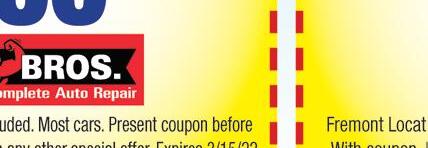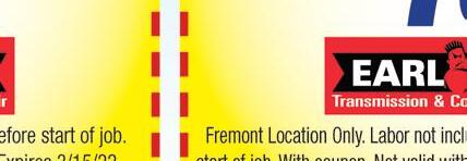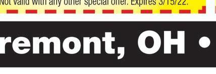 For information about owning a Town Money Saver® franchise, please call 800-481-8696. FREMONT Published By Town Money Saver, Inc. Corporate O ce • PO Box 356 • Lucas, OH 44843 © 2022 Town Money Saver, Inc. All rights reserved. For advertising information, call 888.399.1900 NEXT ISSUE IN HOMES: March 18, 2022 ADVERTISING DEADLINE: March 4, 2022 POSTAL CUSTOMER PRSRT STD ECRWSS U.S. POSTAGE PAID Town Money Saver, Inc. townmoneysaver.com 24/7 Call today! 800-589-3366 OH LIC #23862 With coupon. Not valid with other offers or discounts. Exp. 03-17-22. Bayside Comfort, Inc. Bayside Comfort, Inc. on a Trane High Efficiency Complete System 50% OFF 48 MONTHS 0% Interest 24-hour EMERGENCY SERVICE NEVER pay additional overtime or after-hour charges! Service Diagnostic! UP TO FTMS FTMS 105 South Front St. Fremont Monday - Saturday 9:00am-9:00pm www.elroysdeli.com 419-333-8289 Delivery and Carry- Out available until 9pm WE DELIVER Any order of $20 or more $5 Expires 3/15/22. With coupon. Not valid with any other coupon or discount $19.99 Two large one topping pizzas plus a 1/2 gallon of house made recipe 105 root beer (Regular price $27.50) Expires 3/15/22. With coupon. Not valid with any other coupon or discount Drive-thru only