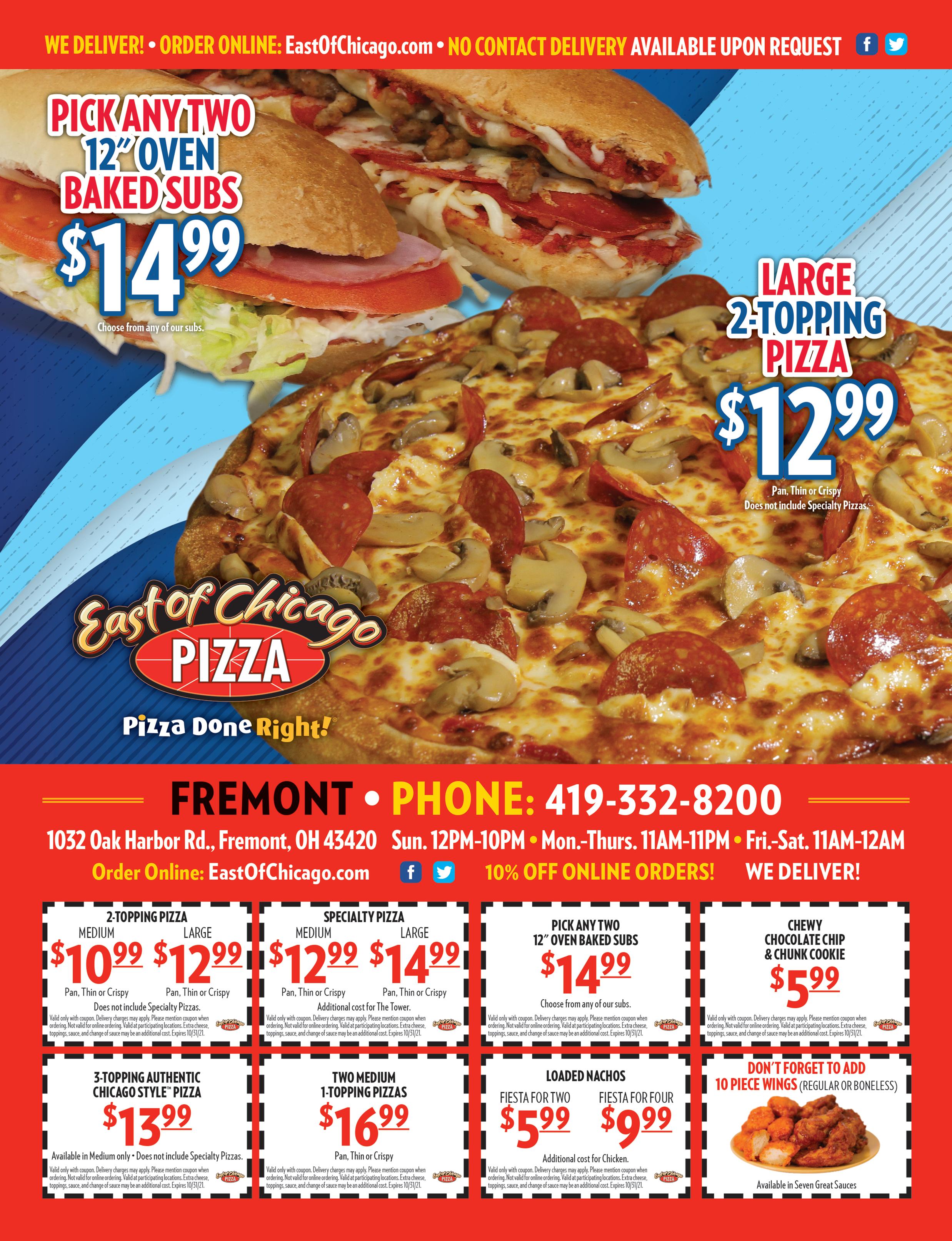 For information about owning a Town Money Saver® franchise, please call 800-481-8696. 105 South Front St. Fremont Monday - Saturday 9:00am-9:00pm www.elroysdeli.com 419-333-8289 Delivery and Carry- Out available until 9pm WE DELIVER Any order of $10 or more Drive-Thru only $5 Expires 10/13/21. With coupon. Not valid with any other coupon or discount Two large one topping pizzas plus a 1/2 gallon of house made recipe 105 root beer (Regular price $27.50) Expires 10/13/21. With coupon. Not valid with any other coupon or discount $19.99 Contac t: Dianna Bess 419-680-6701 For more information diannabess@townmoneysaver.com
