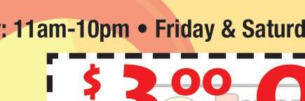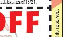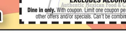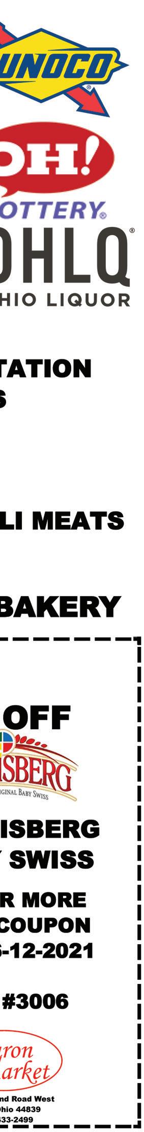 419-433-6017 CARRY OUT & CURBSIDE PICK-UP Family owned and operated 2109 CLEVELAND RD. HURON (Rye Beach Exit) H H H With coupon. One coupon per table. Excludes daily specials & other offers. Expires 06-12-21. With coupon. One coupon per table. Excludes daily specials & other offers. Expires 06-12-21. With coupon. One coupon per table. Excludes daily specials & other offers. Expires 06-12-21. SAVE $2.50 OFF LUNCH Buy 1 lunch at regular price, 2nd is $2.50 off $5.00 OFF Any purchase of $35 or more 419-433-6017 419-433-6017 costaazulhuron.com HAPPY HOUR Sun-Thurs 2-7pm Full Pitcher $15.99 Jumbo Margarita 20oz $6.25 12oz Margarita $4.25 * reg. lime only HOURS Sun-Thurs 11am-9:30pm Fri-Sat 11am-10:30pm SAVE $3.50 OFF DINNER Buy 1 at regular price from menu, 2nd is $3.50 off combo meal DAILY SPECIALS SUNDAY Family Fajita: $2.00 OFF any fajita dinner all day. TUESDAY Hand Cut Strip Steak, topped with al pastor sauce and served with rice and beans. WEDNESDAY Pan-seared Mahi Mahi smothered in fajita vegetables and topped with melted cheese. Served with rice and tartar sauce. $9.99 THURSDAY Wings Choose from our unique wing sauces. 65¢ each. made fresh, right at your table! NEW: Guacamole THE BLIND SHOPPE 1405 SYCAMORE LINE • SANDUSKY, OHIO 419-621-9660 WWW.BLINDSHOPPE1.COM FREE CORDLESS CONTROLS on Alta Cellular Shades (min. $40 value) • Local Showroom • In Home Shopper Service • 40 Styles on Display • Custom Designed Window Treatments • Motorization Specialists • ALTA WINDOW FASHIONS • Comfortex Window Fashions • Graber Window Fashions • Horizon Woven Woods FREE INSTALLATION! Certified Professional Dealer & Certified Installer THE BLIND SHOPPE 1405 Sycamore Line • 419-621-9660 With coupon. Cannot be used with any other offer. Expires 06-12-21. 30% OFF Shutters 25% OFF Blinds THE BLIND SHOPPE 1405 Sycamore Line • 419-621-9660 With coupon. Cannot be used with any other offer. Expires 06-12-21. YOUR NUTRITION CENTER FOR... MENTOR In Creekside Commons Next to Kohl’s | 440-639-7923 AVON In Avon Commons Next to Panera Bread | 440-937-2124 Not valid with any other offer or sale priced items. Cannot be combined. Must present coupon. No cash value. Valid only at Avon & Mentor GNC locations. Expires 6-10-2021. Not valid with any other offer or sale priced items. Cannot be combined. Must present coupon. No cash value. Valid only at Avon & Mentor GNC locations. Expires 6-10-2021. $ 10 OFF $50 Purchase $ 20 OFF $100 Purchase HEALTH JOINT DIET ENERGY SPORTS NUTRITION WEIGHT LOSS MUSCLE GAIN “Your Locally Owned GNC”