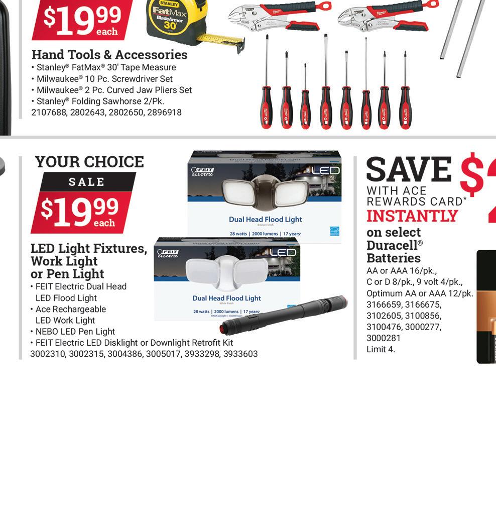 HURON HARDWAREACE 402 Cleveland Rd. E. • Huron 419-433-4797 Mon-Fri 8-6 • Sat 8-5 • Sun 11-5 SHOP ONLINE at WWW.ACEHARDWARE.COM MANY MORE ITEMS ARE ON SALE. COME CHECK US OUT!