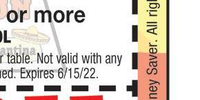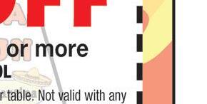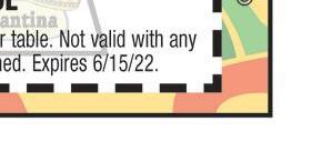 419-433-6017 CARRY OUT & CURBSIDE PICK-UP Family owned and operated 2109 CLEVELAND RD. HURON (Rye Beach Exit) H H H With coupon. One coupon per table. Excludes daily specials & other offers. Expires 06-16-22. With coupon. One coupon per table. Excludes daily specials & other offers. Expires 06-16-22. With coupon. One coupon per table. Excludes daily specials & other offers. Expires 06-16-22. SAVE $2.50 OFF LUNCH Buy 1 lunch at regular price, 2nd is $2.50 off $5.00 OFF Any purchase of $50 or more 419-433-6017 419-433-6017 costaazulhuron.com HAPPY HOUR Sun-Thurs 2-7pm Full Pitcher $15.99 Jumbo Margarita 20oz $6.25 12oz Margarita $4.25 * reg. lime only HOURS Sun-Thurs 11am-9:30pm Fri-Sat 11am-10:30pm SAVE $2.99 OFF DINNER Buy 1 at regular price from menu, 2nd is $2.99 off combo meal