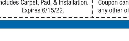 OVER 15,000 SQUARE FEET TO CHOOSE FROM! 2022 WAREHOUSE IN-STOCK SALE “We take pride in what you stand on.” Mon & Fri 8:30-5 Tues-Thurs 8:30-4 Sat 9-Noon “Like us” on Visit our website at www.balduffs.com for all your floor covering and carpet cleaning needs. A Full Service Company Since 1980 • Silky Softness. Superior Performance. • Three times more individual fibers than ordinary nylon carpets. • Each strand of SmartStrand Silk carpet is packed with 700 silk-like, stain-resistant fibers. on Luxury Vinyl Plank Flooring! Glue down and floating flooring available. Minumum 2 areas of carpet cleaning. Areas over 250 sq ft of carpet considered a separate area. Must present coupon to receive this price. Tax not included. Cannot be combined with other discounts. Offer valid for one visit only. Expires 06-16-22. Balduff’s ONE ADDITIONAL AREA $1 77 E. Main St. • Norwalk 419-668-4665 Toll Free 1-800-423-1310 CARPET CLEANING TILE CLEANING FURNITURE CLEANING DUCT CLEANING Must present coupon. Cannot be combined with other discounts. Expires 06-16-22. Balduff’s THIS MONTH ONLY 10% OFF ALREADY LOW WAREHOUSE PRICING Remodeling & Restoration 419-626-9613 oldetownewindows.com Call to Schedule an In-Home or Showroom Appointment! WINDOWS DOORS • SIDING Your Local Window & Door Supplier Since 1986 Locally Owned & Operated Call now for a FREE estimate and to schedule your new windows!
