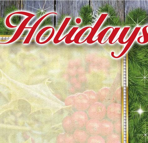 THERE’S NO TIME LIKE THE FOR SUCCESS IN THE TO PLAN Call SANDY LONZ 419-706-1390 38 Main Street • Huron • 419-616-0063 HOURS Monday & Tuesday 3-10pm Wednesday & Thursday 11am-10pm Friday & Saturday 11am-11pm Sunday 11am-10pm Check our Facebook page for DAILY SPECIALS! GIFT CERTIFICATES MAKE GREAT GIFTS! MERRY CHRISTMAS!