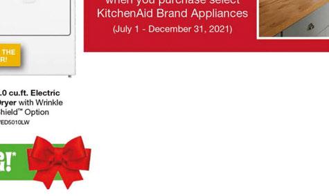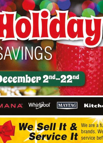 From all of us at Town Money Saver to all of you, with best wishes for a joyous holiday season and a Happy New Year! Up to 35% OFF plus additional savings using your Sears card! LOCALLY OWNED & OPERATED searshometownstores.com 60 E. Main St. Norwalk, OH 419-668-0262 60 E. Main St. Norwalk, OH 419-668-0262 Washers • Dryers Stoves • Refrigerators Freezers • Microwaves Sweepers We also carry mattresses! LEASE IT, LOVE IT, OWN IT! Leasing available. Take it home today! Mon-Sat 9-6 Sunday 11-4 FRIENDS & FAMIILY SALE! DECEMBER 9th THRU 11th Happy Holidays, from all of us to all of you! Get an additional 5% OFF or 12 months 0% fnancing on appliances over $599, with a Sears card