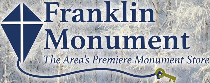 Starting to make plans for the new year? 39 Woodlawn Avenue • Norwalk www.franklinmonument.com • Visit us on Facebook! 419-663-7866 OPEN M-Th 9-5, Fri 9-3:30 Saturdays & evenings by appointment • Pre-Planning • Estate Planning • Use Your Tax Refund! • Order Custom-Made Items for Yourself or a Loved One Plan to give—and receive!—peace of mind. See our selection of above-ground columbariums! • Etchings • Benches • Financing • Large color selection • In-home consultations • Large showroom • Handicap accessible