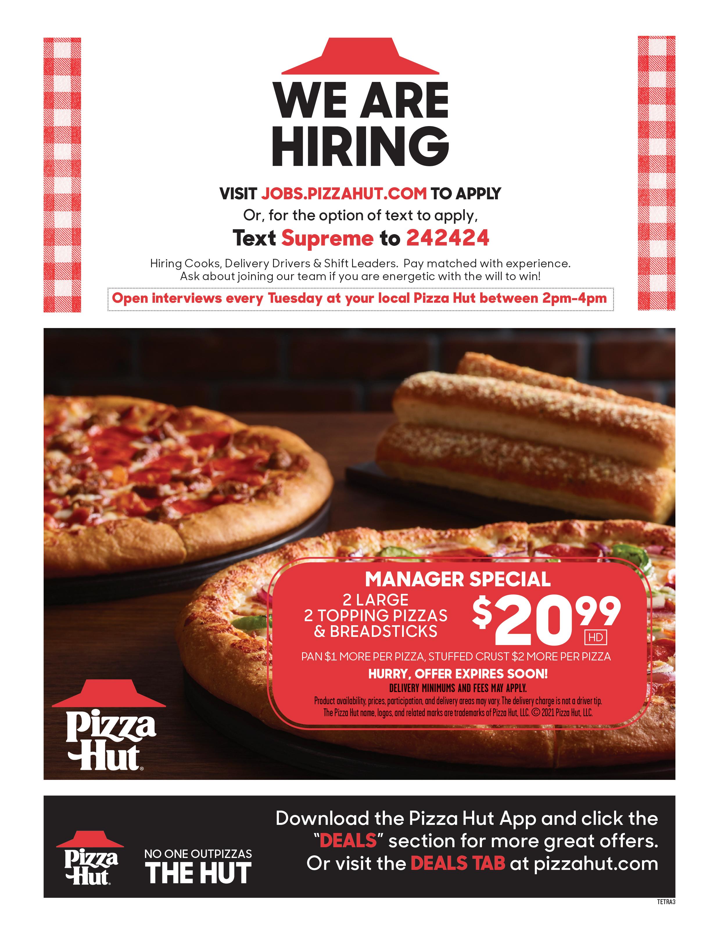 419-663-5555 105 Whittlesey Ave. Norwalk OPEN: Sun-Weds 11am-10pm Thurs 11am-11pm Fri-Sat 11am-Midnight Minimum Delivery Order $10. We accept cash. LUNCH SPECIAL 1 Small 1-Item Pizza or 6” Sub & a 20 oz. Drink Code NOR699. Carry out only. Please mention coupon when ordering. Prices, tax, and charges may vary. Excludes other offers. Good at Norwalk location only. Expires 06-30-21. 6.99 Carry Out Only * Subject to change Code NOR3299. Please mention coupon when ordering. Prices, tax, and charges may vary. Excludes other offers. Good at Norwalk location only. Expires 06-30-21. FOUR LARGE 1-TOPPING PIZZAS 32.99 MEDIUM ONE-ITEM PIZZA NO LIMIT! Min. delivery order $10 CARRY-OUT with our DRIVE-UP WINDOW! 6.99 QUICK CARRYOUT & HOT DELIVERY! We are NOW HIRING! Code HD1199. Please mention coupon when ordering. Prices, tax, and charges may vary. Excludes other offers. Good at Norwalk location only. Expires 06-30-21. Welcome, Summer! 1 PIZZA BOWL & CHEESYBREAD 11.99 WEDNESDAY through FRIDAY ONLINE ORDERING AVAILABLE! eastofchicagonorwalk.com 56 Stower Lane • Norwalk • 419-663-0808 COMING SOON Salad Bar & Saturday Buffets!