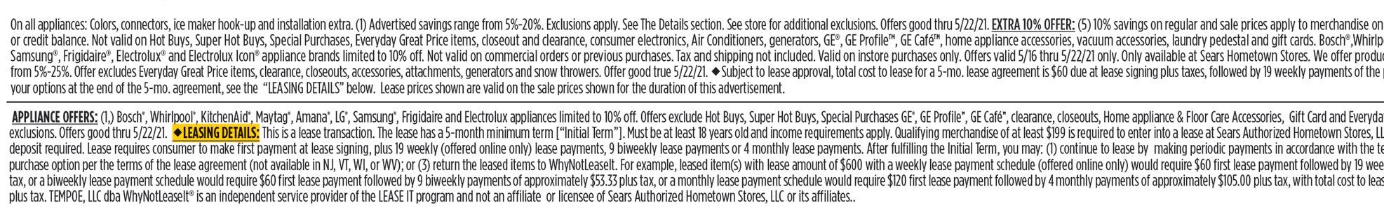 I DON’T WORK FOR SEARS I OWN THIS PLACE 60 E. Main St. Norwalk, OH searshometownstores.com 419-668-0262 LEASE IT, LOVE IT, OWN IT! Leasing available. Take it home today! LOCALLY OWNED & OPERATED Mon-Sat 9-6 Sunday 11-4