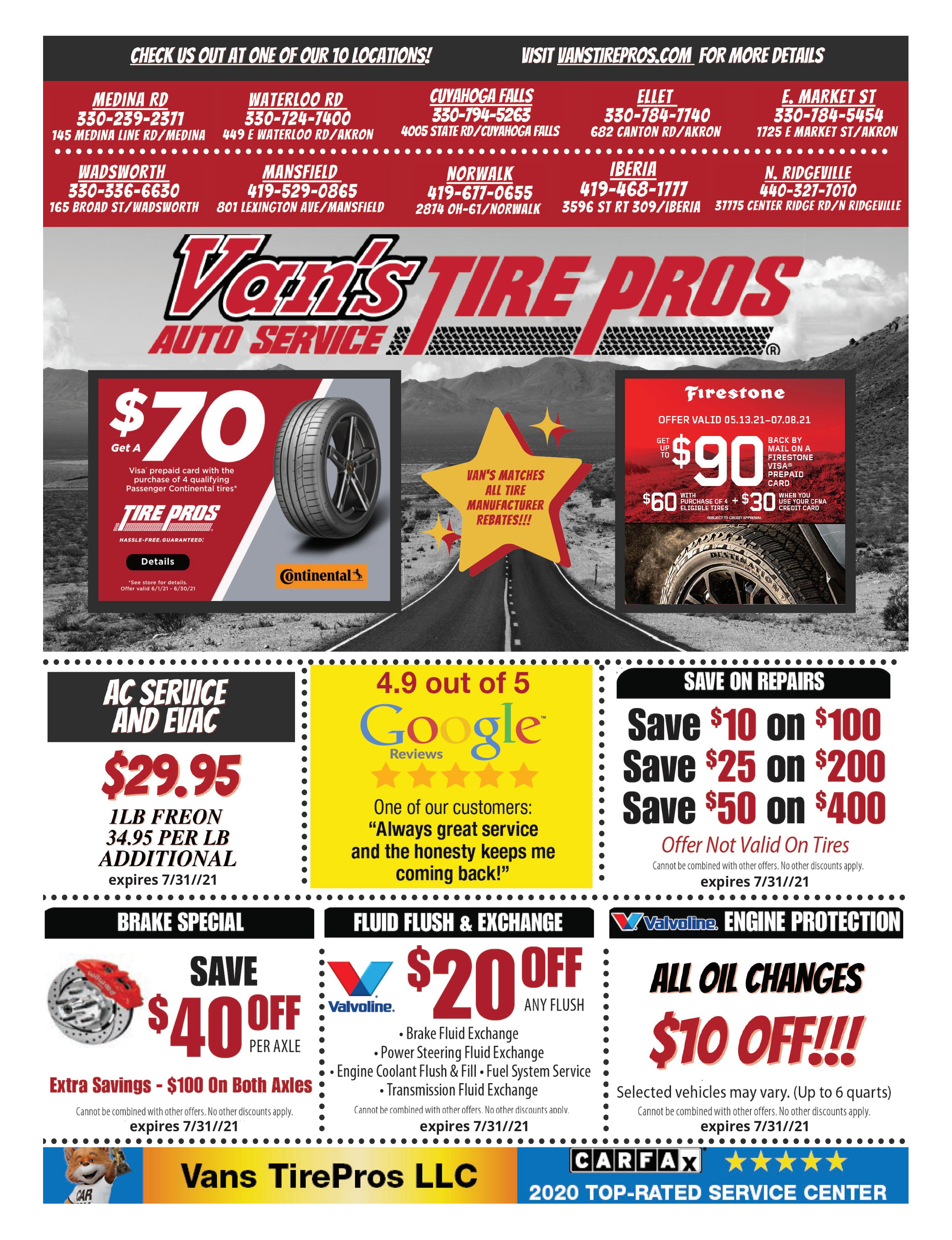 WATCH YOUR FAVORITE EVENTS ON OUR BIG SCREEN TVs! OPEN: Mon-Thu ‘til 11pm • Fri-Sat ‘til midnight • Sunday Noon-11pm 230 Milan Avenue • Norwalk, Ohio 567-743-9392 Carry-out only. With coupon. Cannot be combined with any other coupon or offer. One coupon per customer per visit. Expires 6-24-21. purchase of $30 or more only $6.99 Any Lunch Special CALL AHEAD & CURBSIDE PICKUP SERVICES AVAILABLE N N EXHAUST • BRAKES • TUNE-UPS • BELTS & HOSES • TIRES • CLUTCHES • ENGINES TRANSMISSIONS • SHOCKS & STRUTS • ALIGNMENTS • Other Services Also Available Call for your appointment today 419-668-3071 or 419-668-6121 The Williams Norwalk Tire & Alignment team of technicians wants to help you stay safe in your travels. Rt. 20, 274 Cleveland Rd. • Norwalk www.williamsnorwalktire.com Happy Father’s Day! Become a Facebook fan for current promotions and contests! We miss you, Dad! 1937-2021