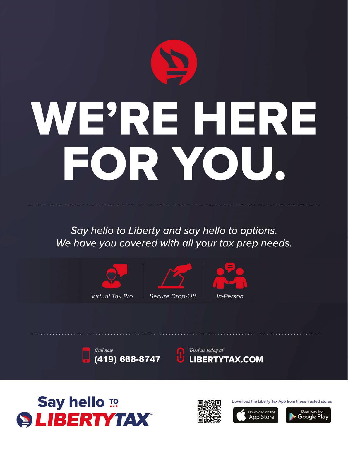 2022 WAREHOUSE IN-STOCK SALE “We take pride in what you stand on.” Mon & Fri 8:30-5 Tues-Thurs 8:30-4 Sat 9-Noon “Like us” on Visit our website at www.balduffs.com for all your floor covering and carpet cleaning needs. WHOLE HOUSE DUCT CLEANING $50 OFF A Full Service Company Since 1980 Minimum fee of 300.00. Must present coupon to receive this price. Tax not included. Cannot be combined with other discounts. Offer valid for one visit only. Expires 03-31-22. Balduff’s • Silky Softness. Superior Performance. • Three times more individual fibers than ordinary nylon carpets. • Each strand of SmartStrand Silk carpet is packed with 700 silk-like, stain-resistant fibers. on Soft and Hard Surface Flooring! Stop in to see merchandise and prices. Minumum 2 areas of carpet cleaning. Areas over 250 sq ft of carpet considered a separate area. Must present coupon to receive this price. Tax not included. Cannot be combined with other discounts. Offer valid for one visit only. Expires 03-31-22. Balduff’s ONE ADDITIONAL AREA $1 77 E. Main St. • Norwalk 419-668-4665 Toll Free 1-800-423-1310 CARPET CLEANING TILE CLEANING FURNITURE CLEANING DUCT CLEANING • You need to use a professional to be sure you receive all your deductions to give you the best refund! • Direct deposits for refunds also available Tax laws are constantly changing, so we are always updating our education for your benefit. OPEN ALL YEAR! 419-663-2950 • 800-700-8948 134 Cleveland Rd. (Rte. 20), Unit E (next to Driver’s Exam Center) Norwalk, Ohio BIusinesses ndividuals AND Why Pay Big Dollars to have your refund in 2 days when you can have it direct deposited in 7-10 days for no extra cost? Keep your hard-earned money! 8-5 Monday-Friday Evening & weekend appointments available Let us do your taxes right the first time! Over 32 years’ experience in tax preparation Attends annual classes for CPE credits Vukmer and Associates 419-663-2950 • 800-700-8948 FREE Consultation with tax preparation With coupon. Not valid with other offers or discounts. Exp. 04-30-22. Remember: Your tax filing deadline is April 15th! See us for all of your accounting, payroll, business planning, and income tax services needs!